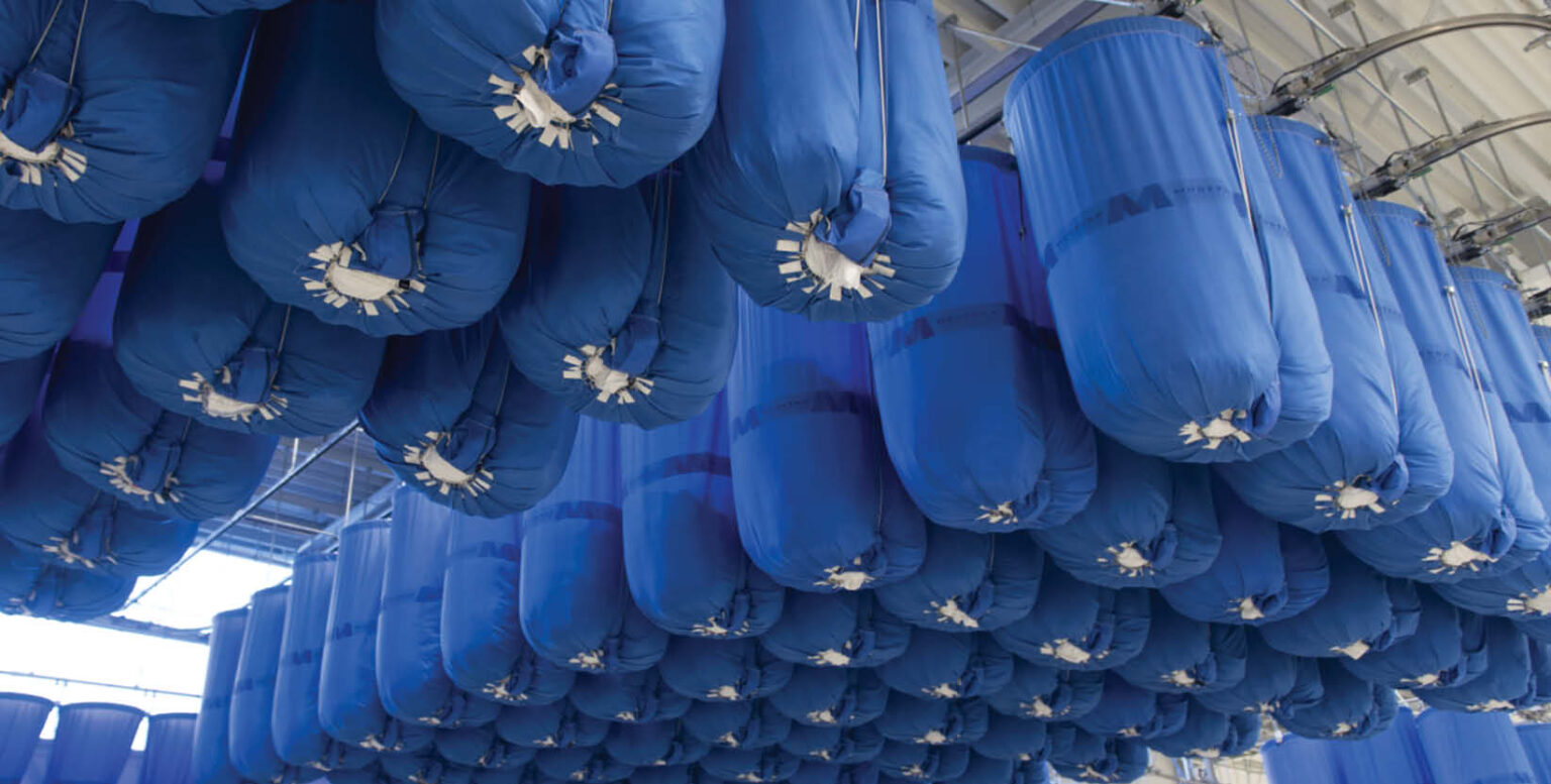 Girbau Industrial overhead bag rail systems transport and buffer laundry overhead, helping facilities manage production peaks and workflow fluctuations. These systems integrate with sorting equipment and adapt automatically to changing clean-laundry demand.