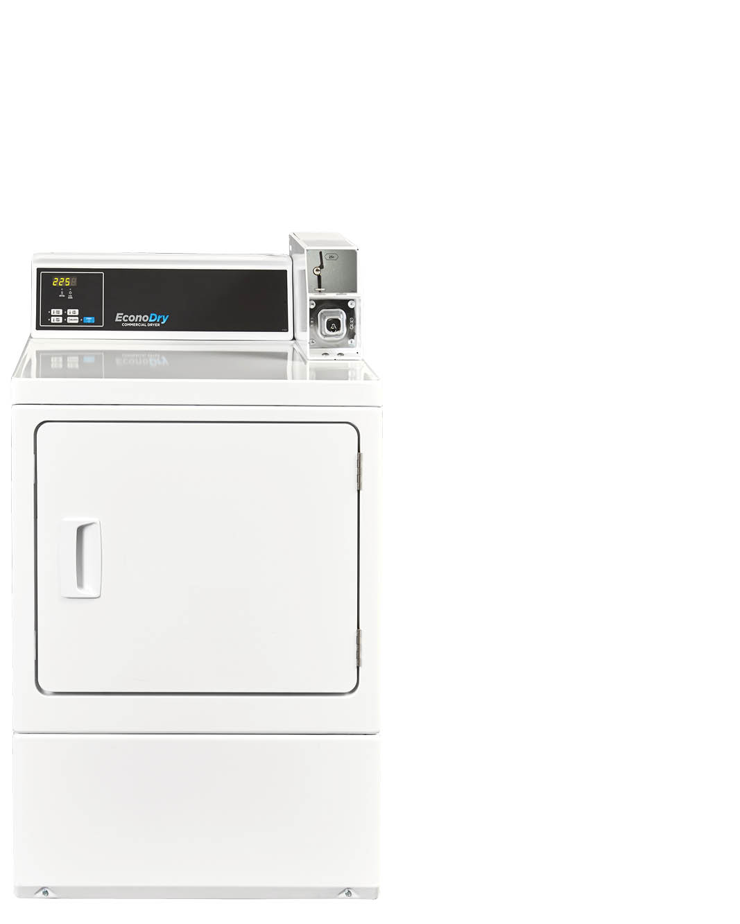 EconoDry single-load dryers offer efficient drying with secure coin vaults. Large doors make loading and unloading easy, while the robust construction ensures durability and minimal maintenance. Front-access serviceability maximizes uptime and efficiency in high-traffic environments. Learn More.