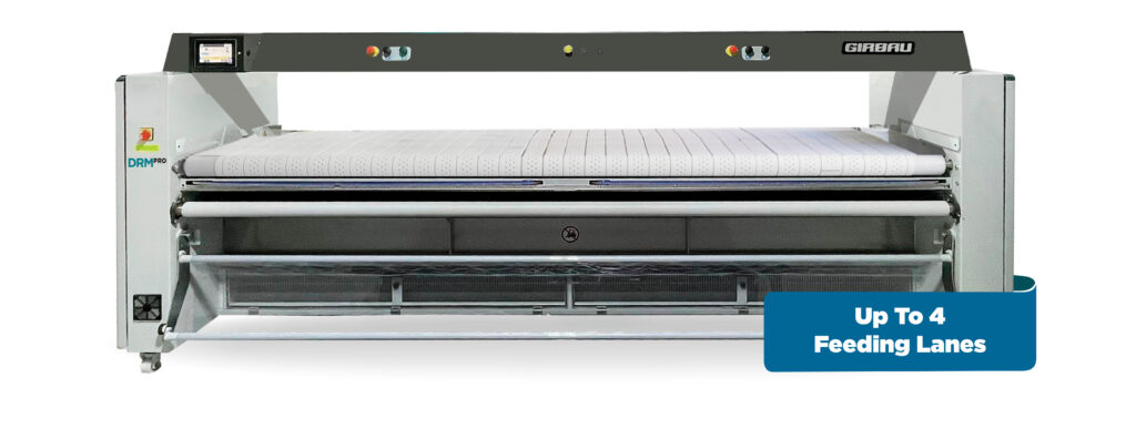 The DRM Pro is designed to deliver simplicity, efficiency and consistently high-quality results. This manual front feeder increases productivity by up to 40 percent compared to direct feeding into a flatwork ironer, making it a smart, cost-effective way to enhance both output and finish quality. Easy to operate and highly versatile, the DRM Pro efficiently processes a wide range of linen types and sizes while helping operators maintain a smooth, reliable workflow.