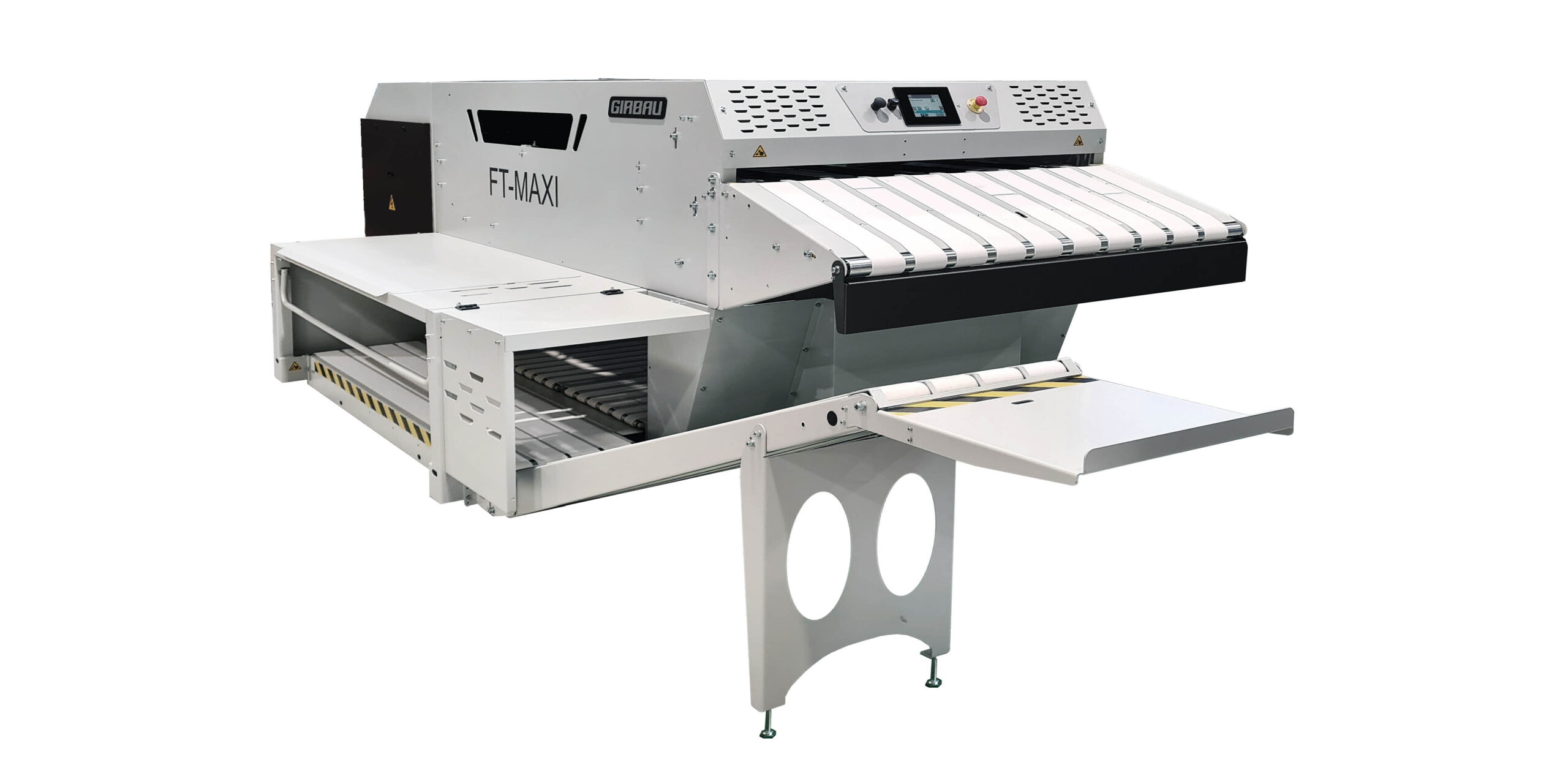 The FT-MAXI Triple Sort Dry Goods Folder is a high-performance industrial machine designed for maximum efficiency in commercial laundries and textile facilities. It folds and stacks a wide range of items, from bath towels and pool towels to table linens and surgical packs, processing up to 900 pieces per hour with consistent, high-quality folds. Equipped with an adjustable manual feed table, an air jet folding system and programmable touchscreen controls, it handles items without interrupting production. Optional multiple stackers and configurable discharge conveyors enhance workflow, while its compact design and precision folding boosts overall productivity.