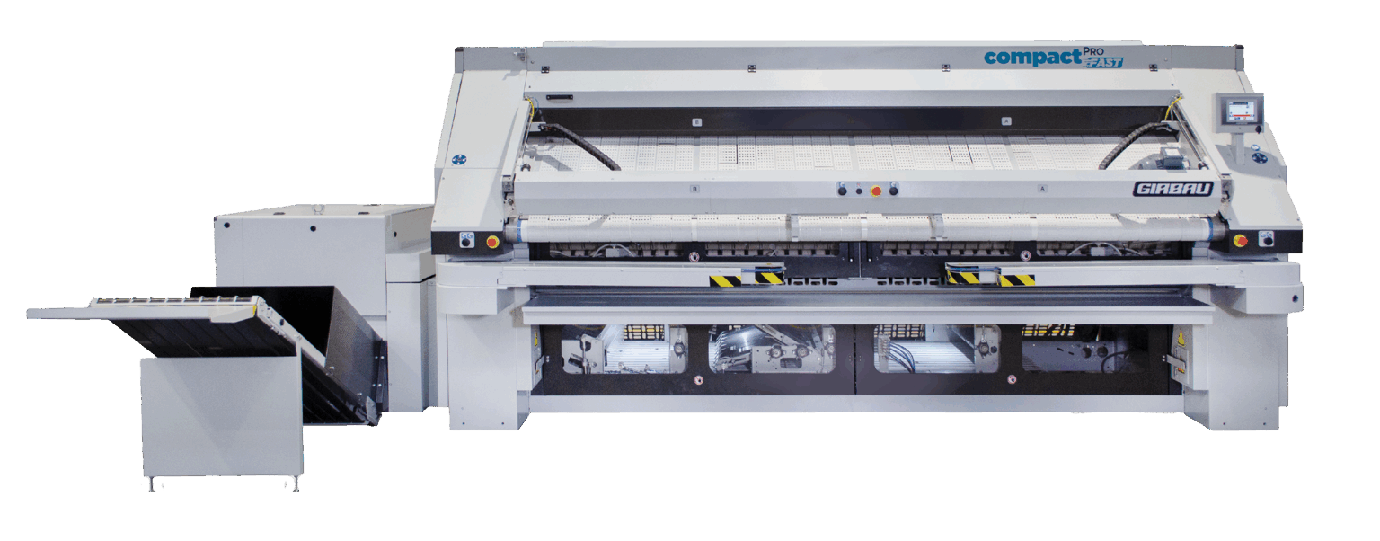 Maximize space and efficiency with the Compact Pro all-in-one ironing system. This advanced flatwork solution automatically feeds, irons, folds, stacks, and accumulates linens — including sheets, duvets, pillowcases, and table linens — in one continuous process. It’s the ideal system for healthcare laundries seeking flawless finishing in a compact footprint.