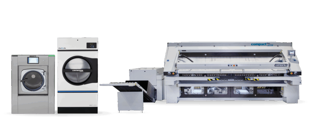 High-speed washer extract speeds cut resulting drying time, while feeding, ironing, folding and stacking automation efficiently processes a variety of linens simultaneously. The result is maxed throughput, lower labor costs and improved end-product quality.
